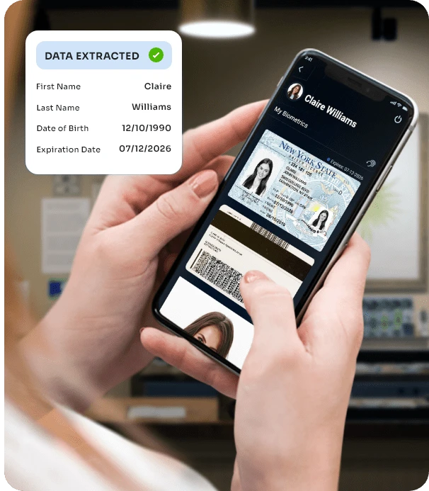 Our user-friendly system guides customers through the license and selfie capturing process.